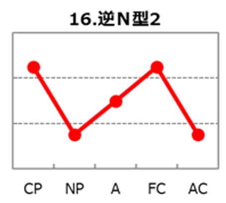 逆N型2は、CP(厳しさ)とFC(自由度)が高く、NP(優しさ)とAC(協調性)が低めに出やすい波形です。迷いを嫌い、目的から逆算して「早く決めて早く動く」ことで成果を取りに行く推進型。自由度が高いぶん既存の枠に縛られず、改善案を試行して最適解へ寄せるスピードも強みになります。一方で母性が低めなため共感表現が薄くなりやすく、協調性が低めなため根回し・合意形成を省略すると反発が生まれ、調整コストが増えることがあります。強みを最大化する鍵は、結論の速さに「目的・影響・例外」を短く共有する型を足し、反発を最小化しながら実装を定着させることです。