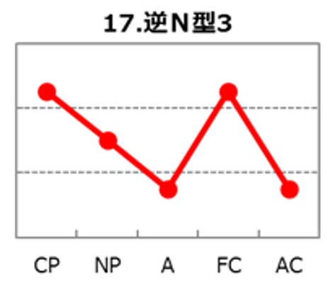 逆N型3は、CP(厳しさ)とFC(自由度)が高く、A(論理性)とAC(協調性)が低めに出やすい波形です。迷いを嫌い、まず決めて動き、状況に合わせて柔軟に手を変えながら突破していく推進型。自由度が高いぶん枠に縛られず、現場で“使える手”を次々に出せるのが強みです。一方で論理性が低めだと根拠の整理や説明が薄くなり、協調性が低めだと共有・根回しを省略して反発を招きやすい傾向があります。強みを最大化する鍵は、決断と行動の速さは保ちつつ「目的・影響・次の一手」を短く共有する型と、重要工程のチェック体制を仕組み化して、反発とミスで失速しないことです。